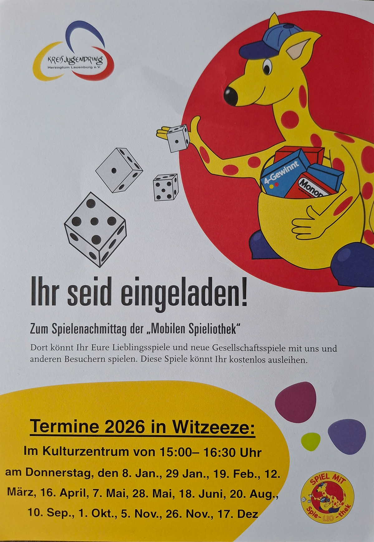 Auch in 2026 wird die „Mobilen Spieliothek“ in Witzeeze im Regionalen Kulturzentrum